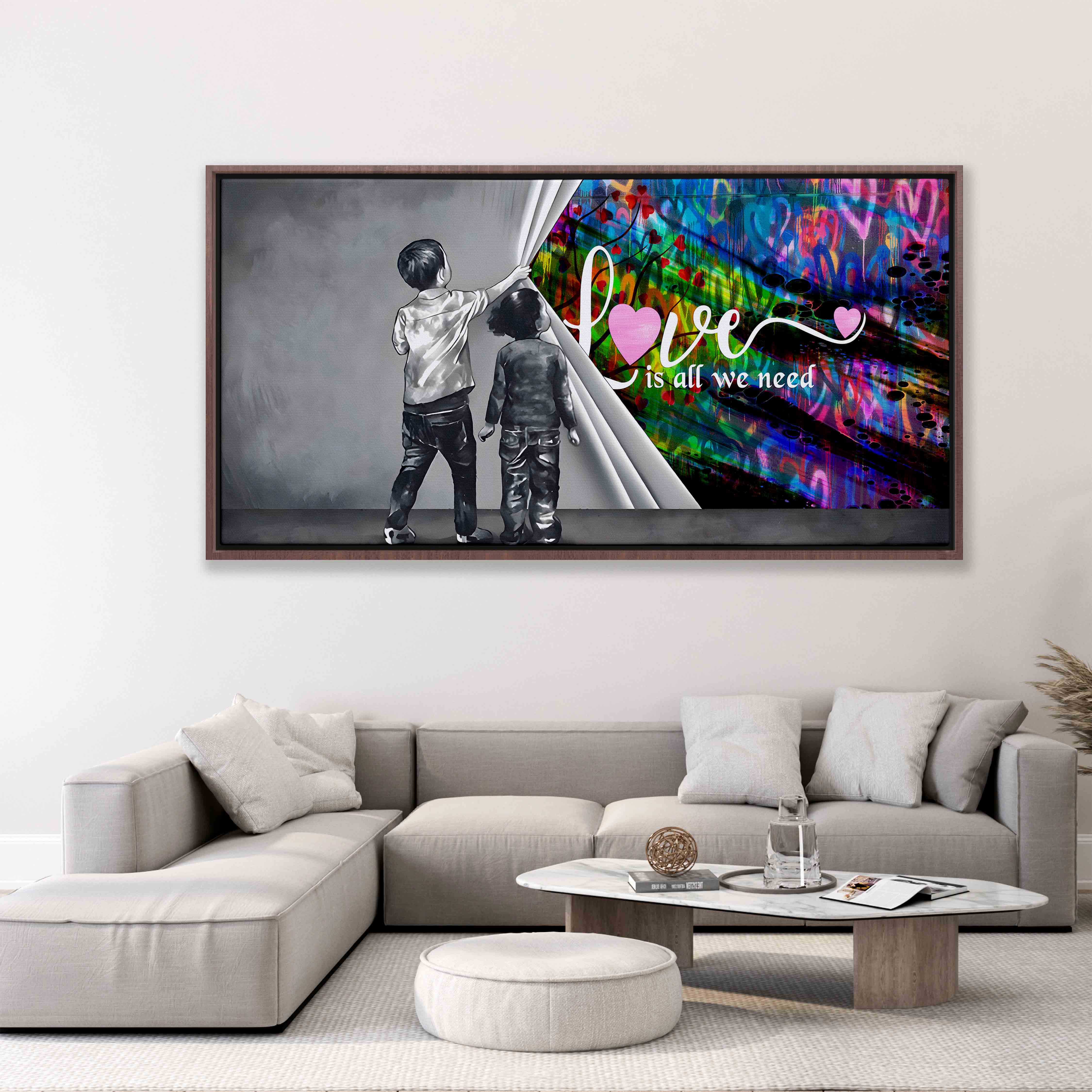 Our framed canvas comes wrapped and stretched over a sturdy wooden frame, ready to hang right out of the box. The unframed version is shipped rolled, giving you the flexibility to choose your own framing option.
